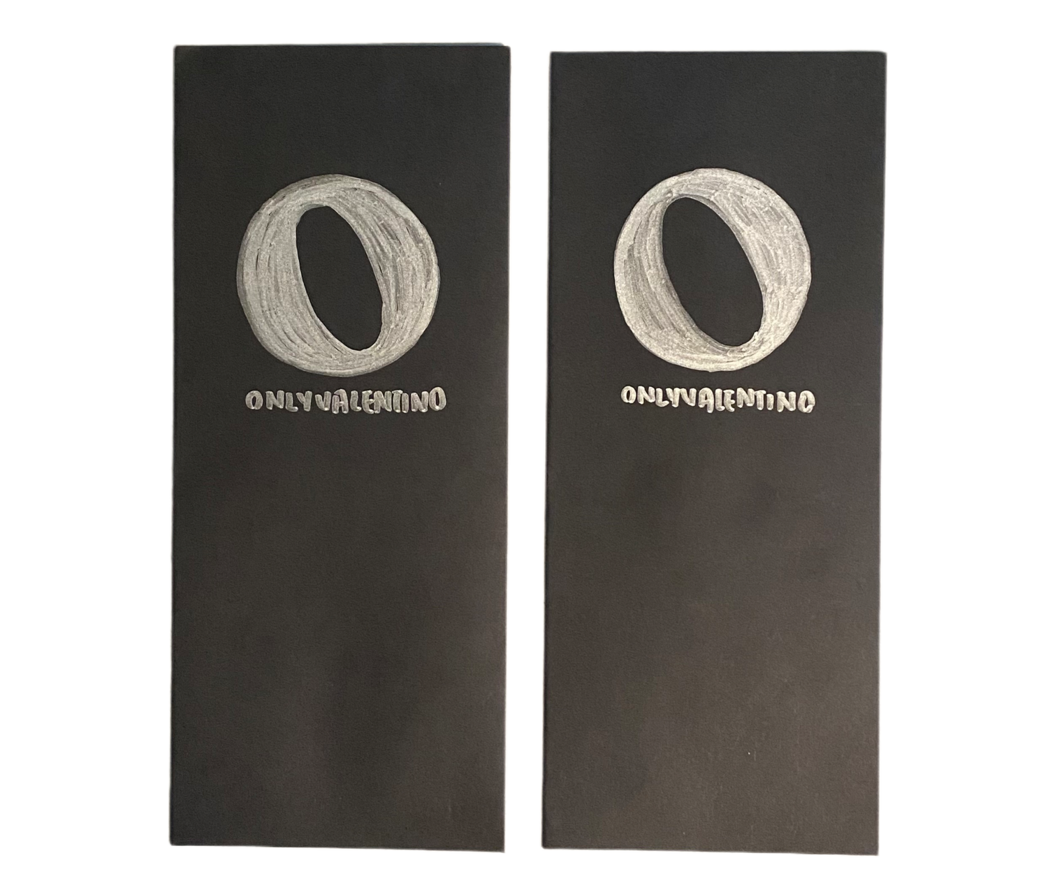 Each signature black envelope features a hand-drawn graphic by ONLYVALENTINO himself!